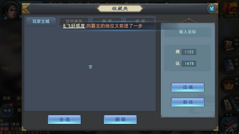3、在右边输入坐标,这里的横纵就是坐标中的XY了,知道2个点就可以确认他的位置,可以前往或者是迁城。