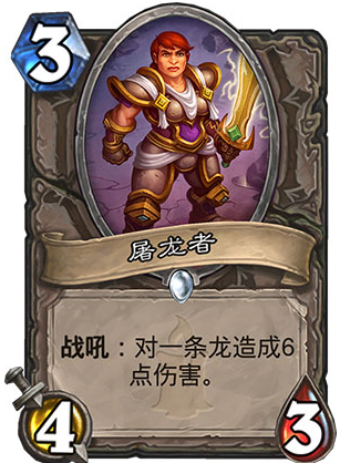 炉石传说狗头人与地下世界中立新卡——屠龙者,3费4-3,战吼:对一条龙造成6点伤害=一发火球