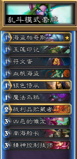 卡组说明:以帕奇斯为主带了3个海盗,其他带亡语过牌/BUFF之类的卡牌,可随意更换。(如果有很多人带傻子,可考虑加入牛哥)