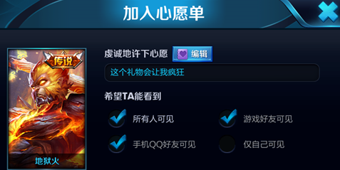 b、 点击许愿日期旁的修改图标,可以【移除心愿】或者对许愿词,可见玩家等进行设置;