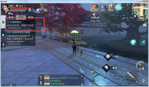 玩家可以在世界频道喊话,加好友,有很多玩家会主动加你。