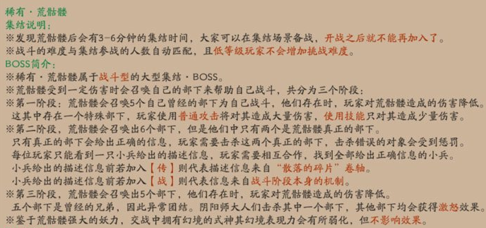 发现机制参考胧车,更新后,首周周一至周四逢魔之时将刷新荒骷髅,周五、周六刷新胧车,周日刷新土蜘蛛。首周过后,荒骷髅,胧车,土蜘蛛将会交替出现。