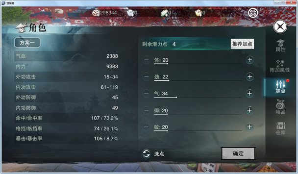 2、气敏加点,兼顾攻击,命中,暴击,生存能力较弱。