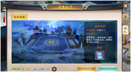 70级会开启无尽深渊副本,会大量产出经验。