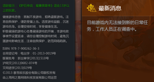 炉石传说没有新的日常任务是怎么回事?今天炉石传说进行了新版本的更新,有的玩家在更新后进入游戏发现没有了日常任务,这是怎么回事呢,不知道怎么回事的小伙伴接下来就跟西西看看接收日常任务失败解决方法吧!