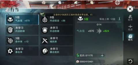 所有身份的培元都一样,使用见识点提升人物属性。