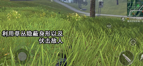 可能一些新手玩家看到游戏内的草丛比较茂盛,觉得蹲下比较不错,也更容易瞄准射击。但其实蹲下是完全无法起到遮蔽效果的,角色必须处于趴下的姿势,草丛能够起到遮蔽的效果。在看到灌木丛的时候,可以在灌木丛中蹲下隐藏自己,但草地并不适用。