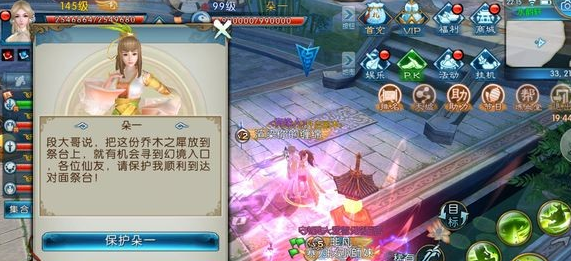 首先组好队我们点击进入副本,直接进入第一部分“水韵轩”副本,第一部分为剧情副本,剧情随机,我们这次遇到的是保护朵一。
