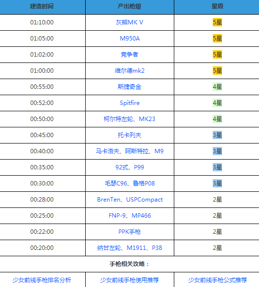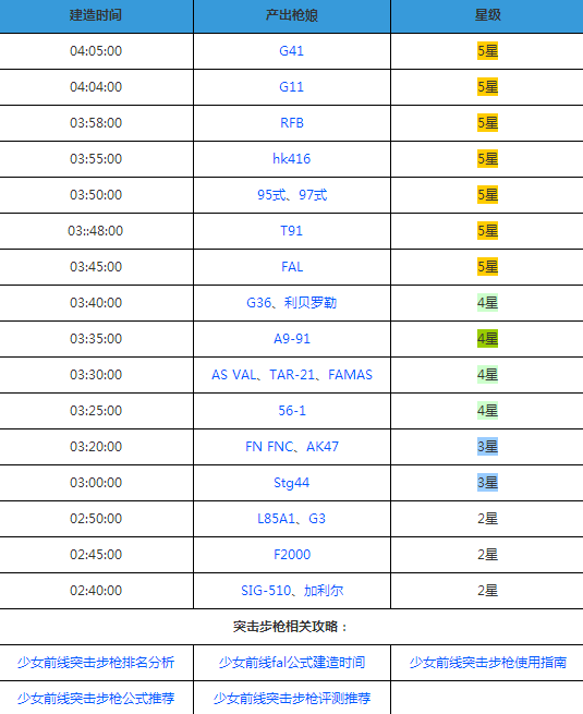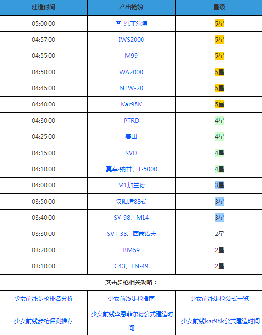 首页 → 安卓游戏资讯 → 安卓游戏新闻 → 少女前线最新版建造时间表一览 大建时间汇总介绍