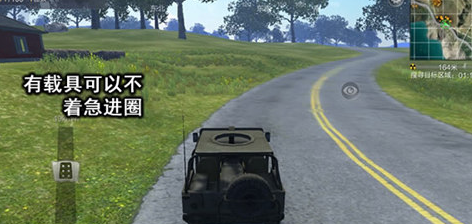 在有载具的情况下,大家可以自己把握时间,不必着急,只要不是出现山地上开跑车这种情况,载具的速度绝对是高于禁令圈的缩减速度的。甚至在进圈过程中发现敌人,可以依靠载具作为掩体交火一波,能够淘汰对手最好,没准可以获得不错的物资,无法淘汰也可以延缓敌人的进圈速度,甚至使其失去进圈的机会,从而提高自己演习的名次。