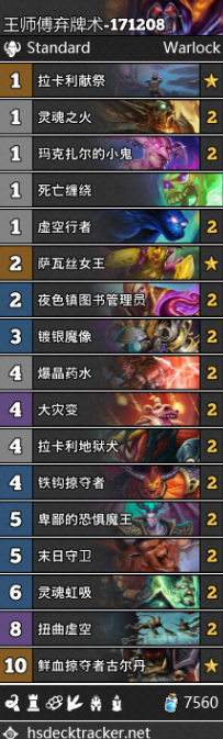 炉石传说狗头人版本王师傅弃牌术卡组推荐,狗头人王师傅弃牌术攻略,炉石传说狗头人版本再次加强了术士的弃牌体系,王师傅组建了一套弃牌术卡组看起来还行,具体胜率还有待测试,下面带来炉石传说狗头人版本王师傅弃牌术卡组攻略,希望对大家有所帮助。