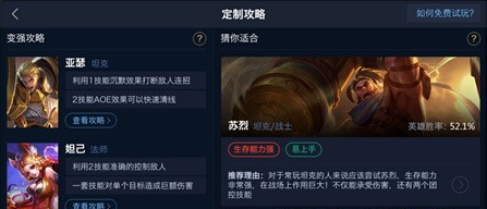 进入游戏主界面,点击界面下方的英雄,进入到英雄界面即可看到定制攻略了!