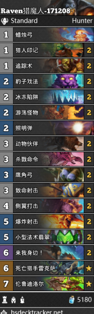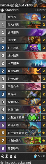 两套卡组整体相差不大,都是纯法术卡组,利用法术来召唤随从占场,而dk+猎人武器橙有着不错的赚取卡差和后期能力。