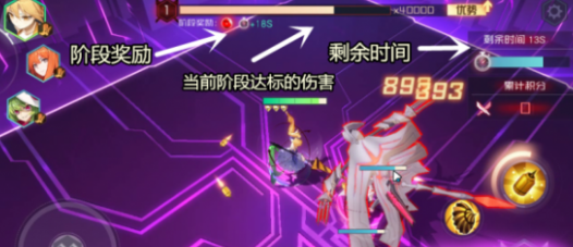 每场战斗的条件都是一样的,在规定时间内对怪物造成更高的伤害。每场战斗开始计时为20秒每当玩家完成每阶段的输出时会进入下一个伤害统计阶段并且加时,比如第一阶段在20秒内打3万伤害如果打过了 自动进入下一个打5万的伤害阶段并且加时18秒。以此类推,直到玩家达不到为止。