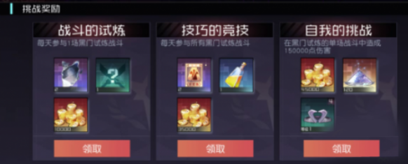 战斗试炼奖励:每天打过1场黑门试炼即可