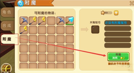 木质短弓是远程武器,制作简单,如果附魔后木质短弓的性能就能提升一个等级,伤害也会增加很多,和众多武器一样,木质短弓可以在背包的附魔界面直接消耗星星获得附魔属性,但是这里获得的属性是随机的属性;