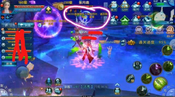 首先组好队我们点击进入副本,直接进入第一部分“水韵轩”副本,第一部分为剧情副本,剧情随机,我们这次遇到的是保护朵一。