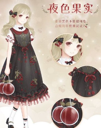 夜色果实套装是一个充满樱桃元素的套装,此前也上线过一套类似的套装。喜欢夜色果实套装的玩家,可以关注游戏内夜色果实套装上架公告。