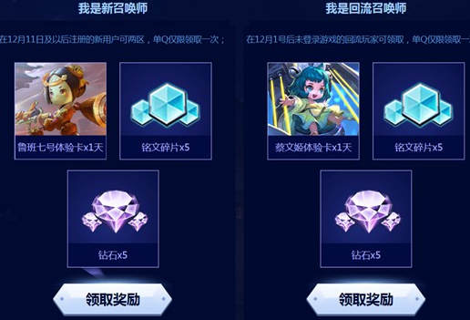 在12月1号后未登录游戏的回流召唤师可领取一份,单账号仅限一次;