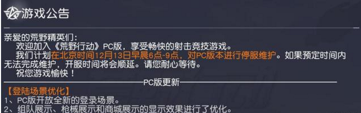 荒野行动PC版12月13日更新了什么