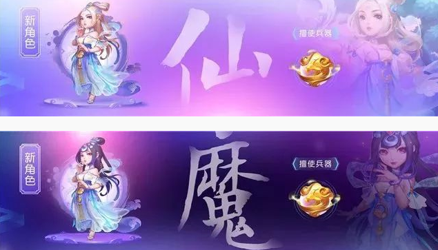 这个新角色分为两个种族,仙族和魔族,两个种族的角色变化最明显的就是头发颜色和发型了,头饰也不太一样,衣服造型方面差别不大。