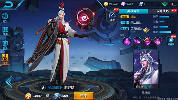 阵容分析:明世隐的特点在于团队增益、同时还可以给敌人造成减益效果,另外他自身还具有极强的单体爆发能力。阵容上可以搭配一个坦克型英雄,明世隐可以提供他防御提升,另外自己也可以跟进团战,在利用一技能打出AOE伤害,另外使用普攻打出控制效果。这里推荐明世隐搭配POKE型阵容,这样也有利于发挥出他的全部优势。