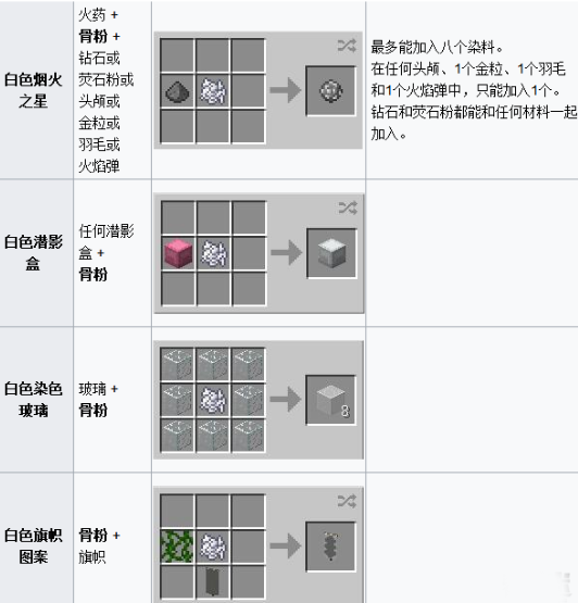 不管骨粉有没有成功施肥,它会发出绿色的闪光(是一种颗粒)。闪光只会在玩家的颗粒被设置到全部或少量时出现。