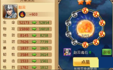 其实武将主要的战力还是靠升星,没事多打打赵云的橙怪,获取魂石,武将的星级越高,战斗力就会越强。