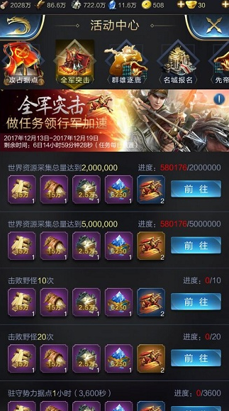 乱世王者上线了全军突击的活动,玩家按照活动要求完成任务可以拿到行军加速哦,不少玩家都想获得,乱世王者全军突击怎么做,西西小编为大家带来全军突击快速完成攻略。