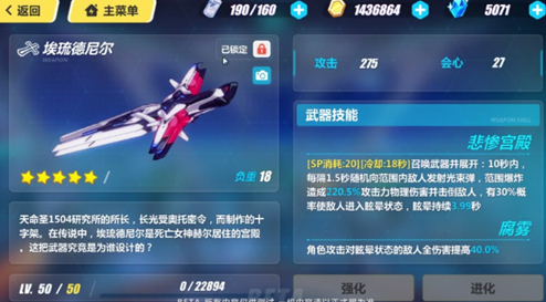 「埃琉德尼尔」的第一击光束弹将会对敌人进行长达6秒的眩晕效果,且在武器展开期间,范围内的己方角色对眩晕状态的敌人造成的物理伤害都会提高。