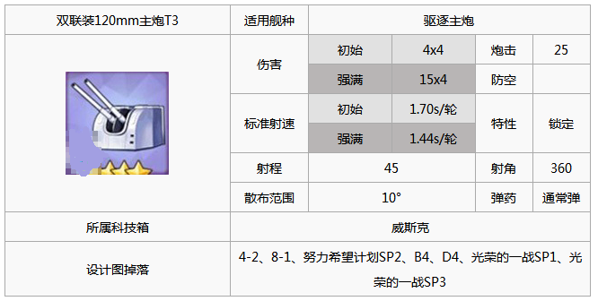 以上就是碧蓝航线双联装120mm主炮怎么样,120mm主炮T3介绍图鉴的全部内容了,因此小伙伴们在进行使用之后就能完全的进行配合自己的想要出的装备使用,小伙伴们就不用担心自己的装备问题,想要了解更多的小伙伴们一起来看看吧。