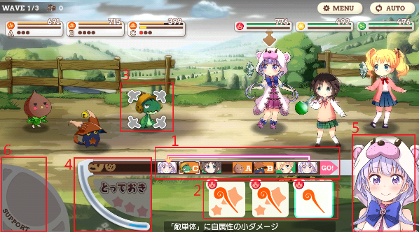 支援角色3次行动后退场(Guest支援只有一次),替换上来的角色出现在行动条最后(如有),要尽量留在关键时刻使用大腿支援。