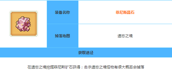 在遗忘之境挖掘菲尼斯矿石获得;击杀遗忘之境怪物有很大概率会掉落
