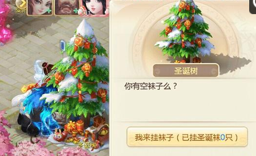 ②活动期间,长安城会布置好3棵圣诞树,玩家可以前往圣诞树挂上圣诞袜子。(参与天庭降妖、钟馗抓鬼、宝图任务即可获得圣诞袜子);