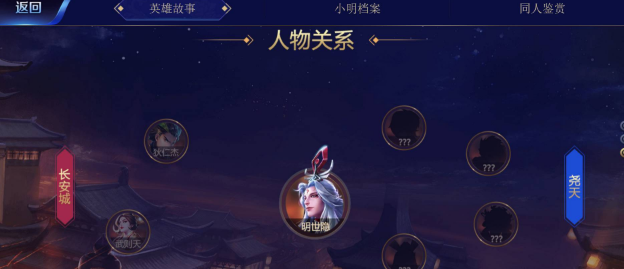 可以看到明世隐的人物关系分为了两个部分,一边是长安城,而另一是“尧天”。长安城中明世隐与狄仁杰、武则天的关系我们以前有说过,就不再多做赘述了。