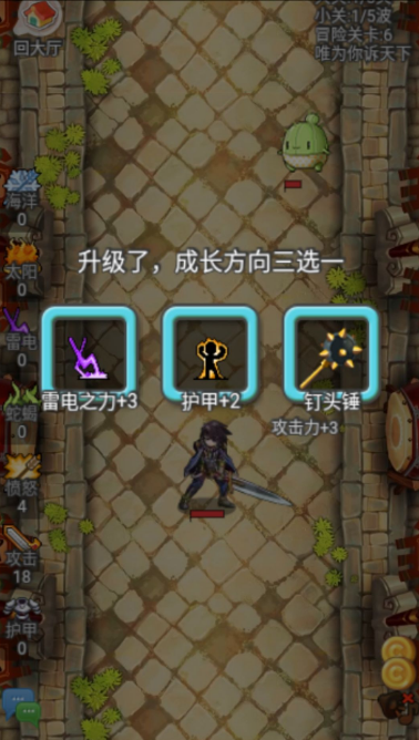 2.每次攻击都可获得经验,升级后会获得一个3选1的属性/装备的机会