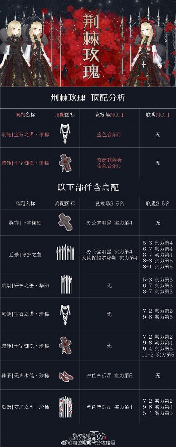 首页 → 安卓游戏资讯 → 安卓游戏攻略 → 奇迹暖暖荆棘玫瑰顶配一览 荆棘玫瑰顶配高配分析