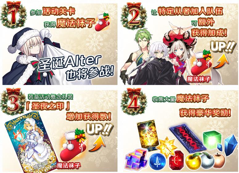 初始效果:自身的Quick性能提升百分之10,Critical威力提升15%*活动期间魔法袜子掉落数量+20%