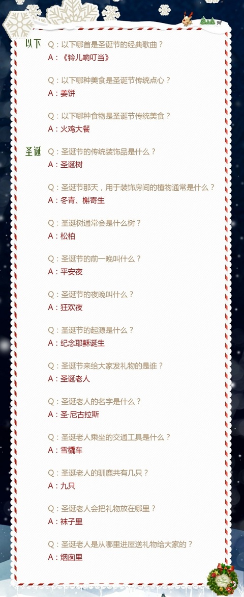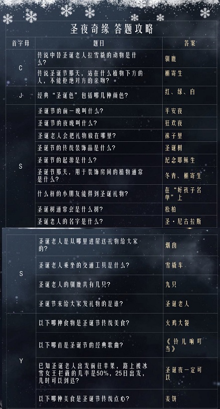 奇迹暖暖圣夜奇缘问题答案大全
