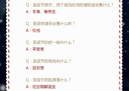 奇迹暖暖圣诞节的夜晚叫什么系列问题是当前奇迹暖暖最新推出的圣诞奇缘系列,大家可以通过了解下方的问题与答案进行回答,帮助大家快速完美通关,至于圣诞节的夜晚叫什么?当然是狂欢夜啦。