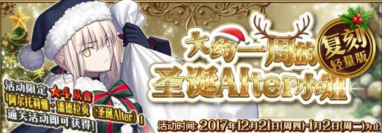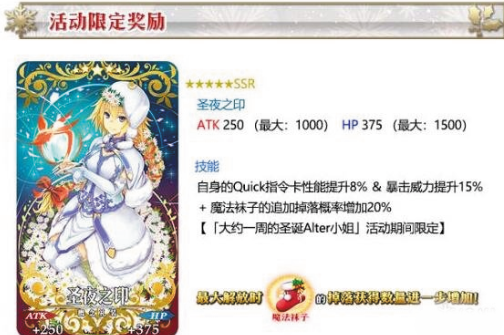 ※即使已经于2016年活动中获得过阿尔托莉雅·潘德拉贡〔圣诞Alter〕,本次活动依然可以再次获得。