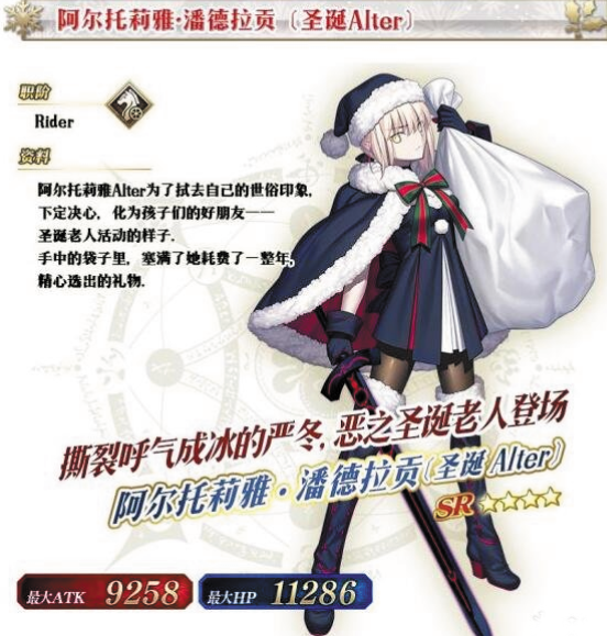 ※阿尔托莉雅·潘德拉贡〔圣诞Alter〕完成灵基再临时不会有战斗形象的变化,敬请注意。