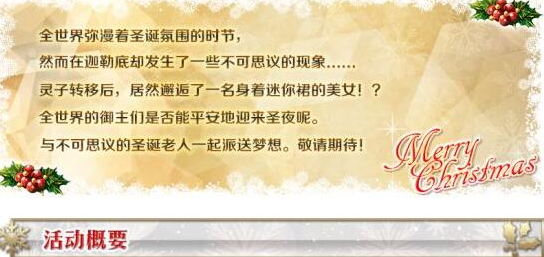 由奈须蘑菇所撰写的原创剧情,限时开放的圣诞节活动。