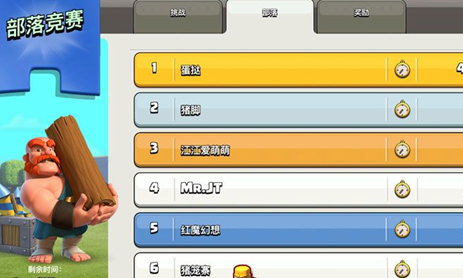 2、在部落竞赛的挑战标签页,可以看到整个部落成员的积分排名,谁出力谁偷懒一目了然。