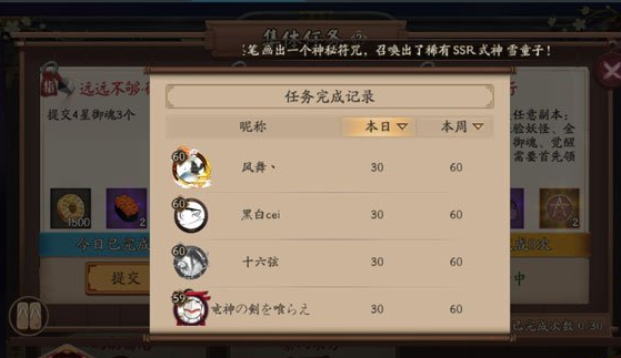 寮勋章的主要获取来源,每人每天可完成30次,前十次奖励翻倍(建设度不翻倍),会长及副会长可查看寮成员任务完成情况(查看方式参照图1、图2)。