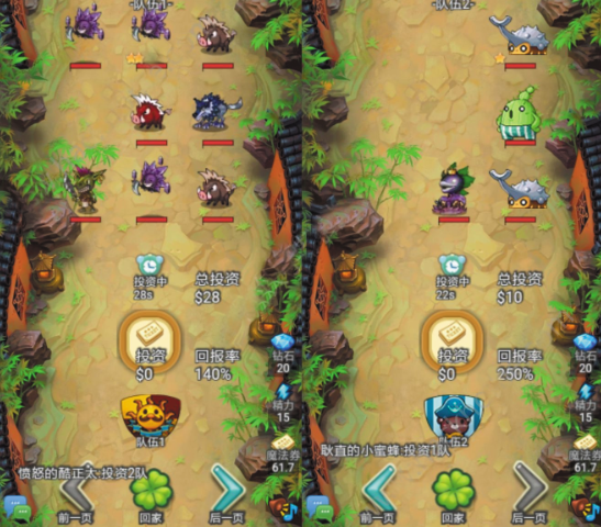 投资队伍随机获得宝物装备,
