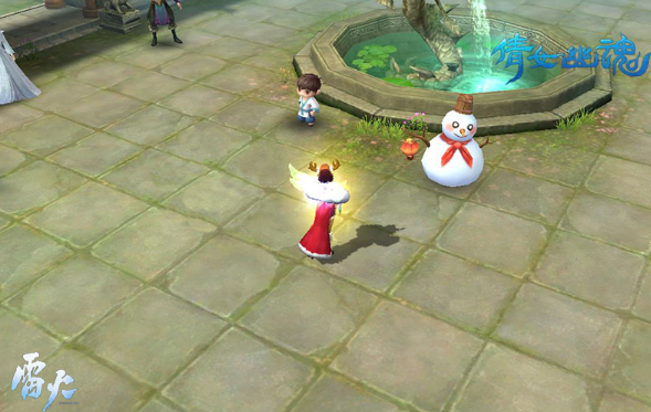 玩家可前往金陵水池边,寻找雪孩子报名参与有趣的红绿大作战玩法!