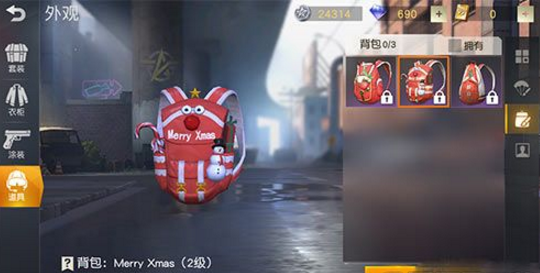 如果你想要1级、2级、3级背包都有显示,那么只能把圣诞老人背包、Merry Xmas背包、小麋鹿背包全买了才可以哦。