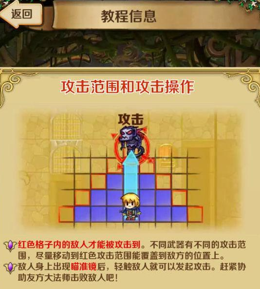术法武器的攻击距离一般是1-2,只有少数是1,而物理武器攻击距离一般是1,少数是1-2,除此之外,弓箭的攻击距离是2。攻击距离为2的武器可以攻击到斜对角位置或相隔一格的位置,攻击距离为1的武器只能攻击到相邻的位置 。