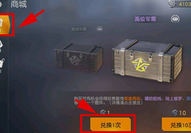点击补给选项,选择所需要购买的普通军需或者高级军需,点击兑换,兑换成功获得一个相对应的军需勋章